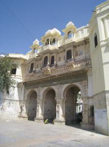 Udaipur itself is one of the most beautiful places I’ve ever seen. I had planned to spend two nights here but hadn’t counted on the festival of Holi which has shut everything down today, making it impossible to move on. I’m not sorry. I’m staying in a 200-year old haveli, a five-story house with rooms set on balconies around a central courtyard. For 400 rupees a night (eight dollars) I have a window seat with daybed that overlooks the lake, intricate murals painted on my walls, and extremely genial hosts.