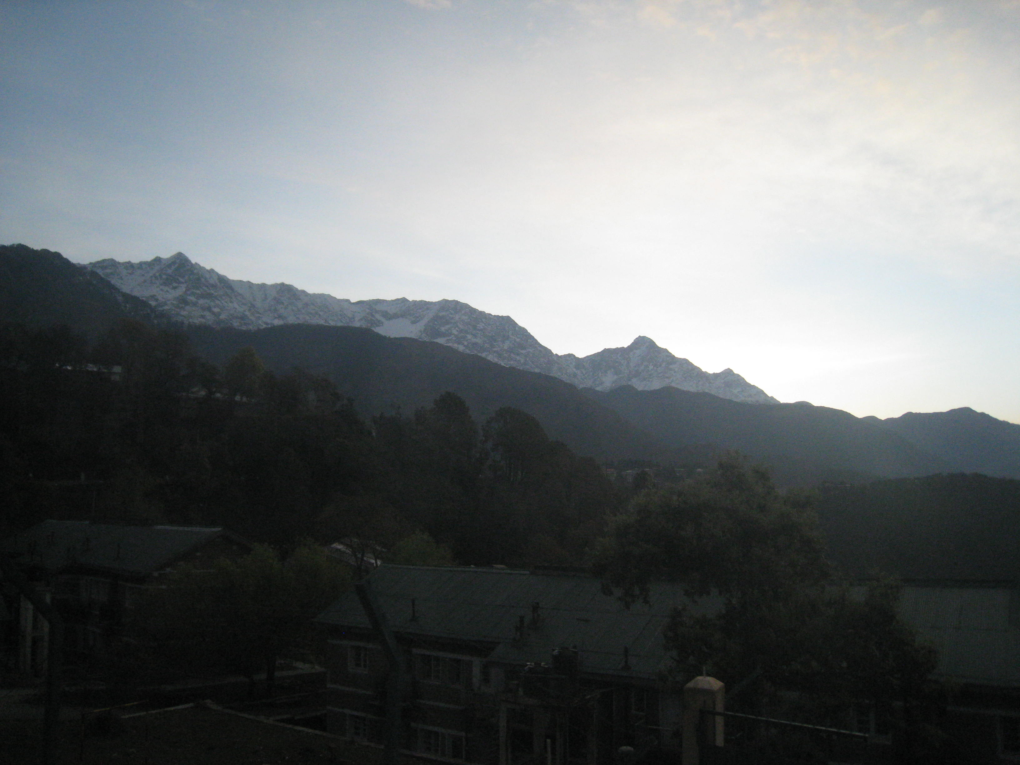 Another #&% early-morning bus, this time to Gaggal (pr Guggul), where the travel agent who had spent what seemed like hours uncomfortably hitting on me while I waited for him to book me a train ticket had claimed there would be a direct bus to Amritsar. There wasn’t. But at least I was on the six o’clock bus, not the four o’clock one I’d originally planned, and I saw the sun rise in clear skies over the shy snowy peaks behind McLo. Apparently my great-great-grandmother was born somewhere around here, but that’s all I know about it.