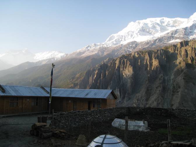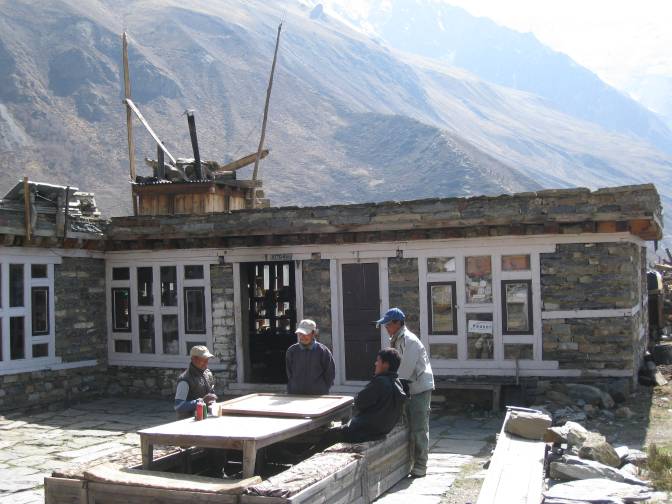 April 25: Ian’s knee was feeling slightly better so we decided to move on to the next village, Yak Kharka (alternatively called Yak Crack or Yak Carcass). Hugo and Roberto had decided to go up to Tilicho Lake (supposedly the highest lake in the world) so they would be a day behind us at the pass. I didn’t cry when they left, as Roberto and I were barely speaking to each other by that time. Up to that point I hadn’t been sure how long I would continue with Ian, Robert and Indra, as I didn’t want to impose and I knew they were nice enough guys that they would never tell me to take a hike. But that day began the incessant giggling that would characterize the rest of the trip; it convinced me I was welcome to go over the Thorong La pass with them.